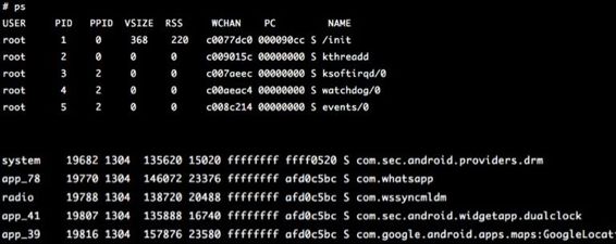 如你所见,ps将列出当前在 Android 系统中运行的所有进程。 如果仔细看,第一列制定了用户名。 在这里我们可以看到各种用户名,如system,root,radio和一系列以app_开头的用户名。 正如你可能已经猜到的,以system名称运行的进程由系统拥有,root作为根进程运行,radio是与电话和无线电相关的进程,app_进程是用户已下载的所有应用程序, 安装在他们的设备上并且当前正在运行。 因此,就像在 Linux 中用户确定了当前登录到系统的唯一用户一样,在 Android 中,用户标识了在自己的环境中运行的应用/进程。